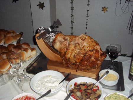 Te invitamos a probar una delicia práctica y sencilla que le dará un toque especial a tus reuniones: Pernil de cerdo asado acompañado con panecillos saborizados, guarniciones y salsas varias .NO DUDES EN CONSULTARNOS!!!
